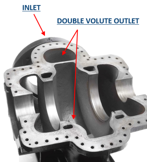 loại bơm đơn tầng có vỏ tách đôi và cánh bơm hút đôi.